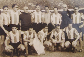 Arriba: F.Lombardo, E.Mouriño, G.Stábile (DT), P.Dellacha, J.E.Musimessi, J.García Pérez, E.Gutiérrez.